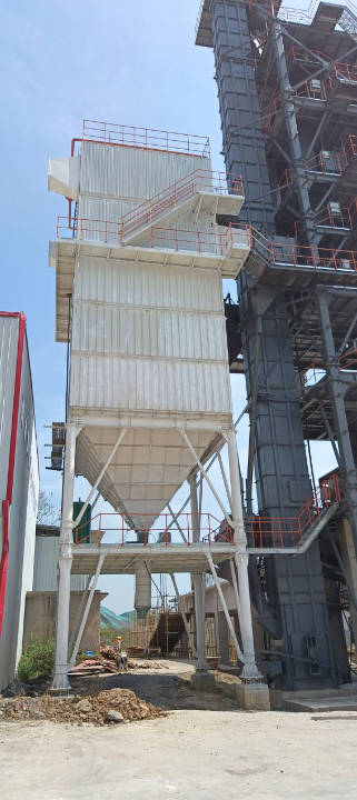 高效布袋式除塵器,采用離線清灰脈沖除塵技術(shù),將制砂過程中產(chǎn)生的粉塵收集到石粉倉中,除塵效率高達(dá)99%;